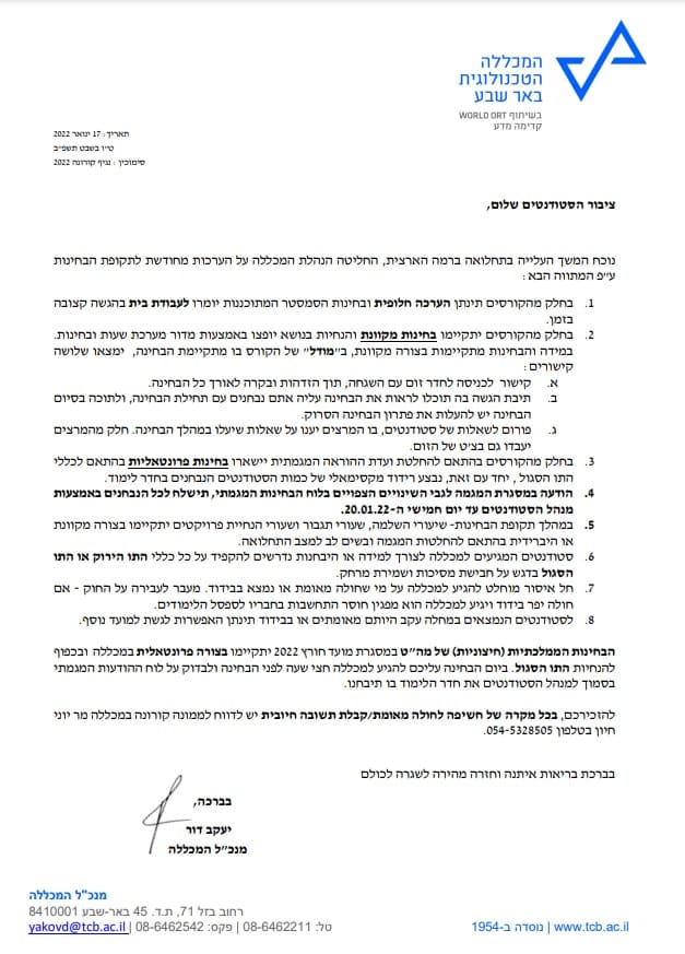 מצ”ב הודעת מנכ”ל בנוגע לשינויים צפויים בלוח הבחינות.
