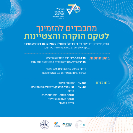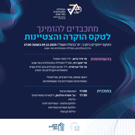 אנחנו נרגשים להזמין אתכם לשני טקסים מיוחדים ומעוררי השראה, שבהם נחגוג את הישגי הסטודנטים המצטיינים שלנו לשנת התשפ”ה.